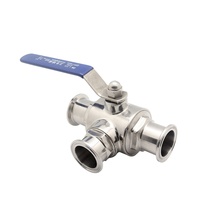 Covna วาล์ว B2Bclearance สุขภัณฑ์แบบ3ทาง DN20 3/4 "3ทาง L-Port Tri CLAMP เชื่อมต่อ, สแตนเลส316, ที่จับคันโยก